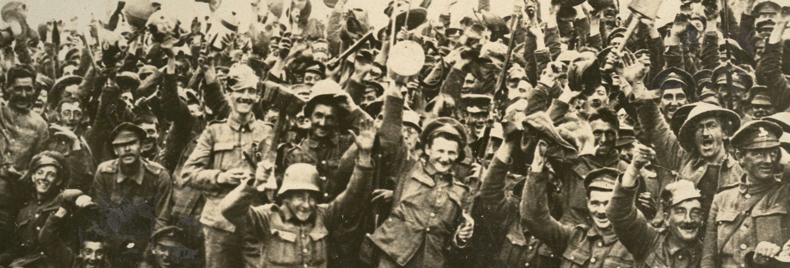 In contrast is this photograph of uneven emotional display, showing American POWs in Germany in 1917: