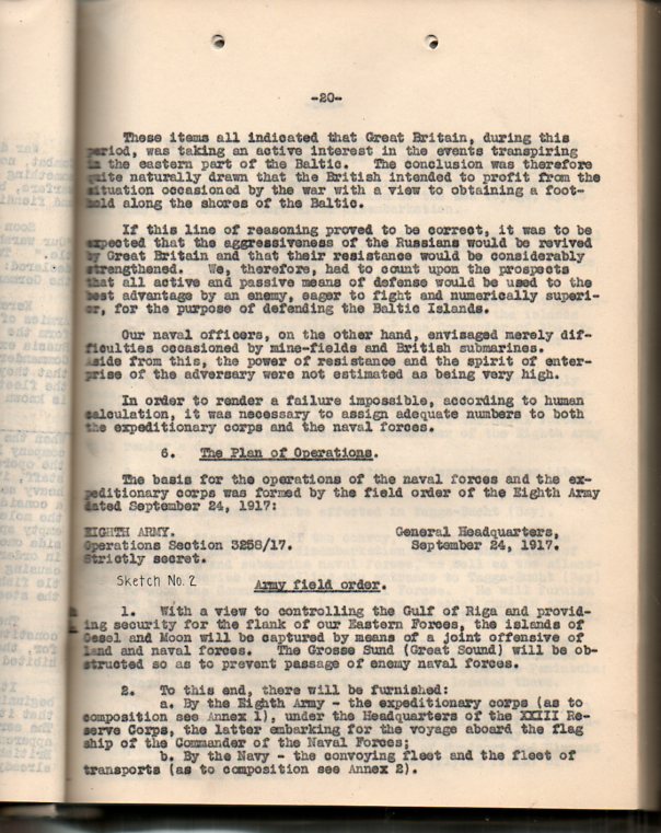 Translation by Col. H.H. Hossfeld of Lt. General von Tschischwitz, Armee und Marine bei der Eroberung der Baltischen Inseln im Oktober 1917: Erfahrungen und Betrachtungen as The Army and Navy During the Conquest of the Baltic Islands in October, 1917.