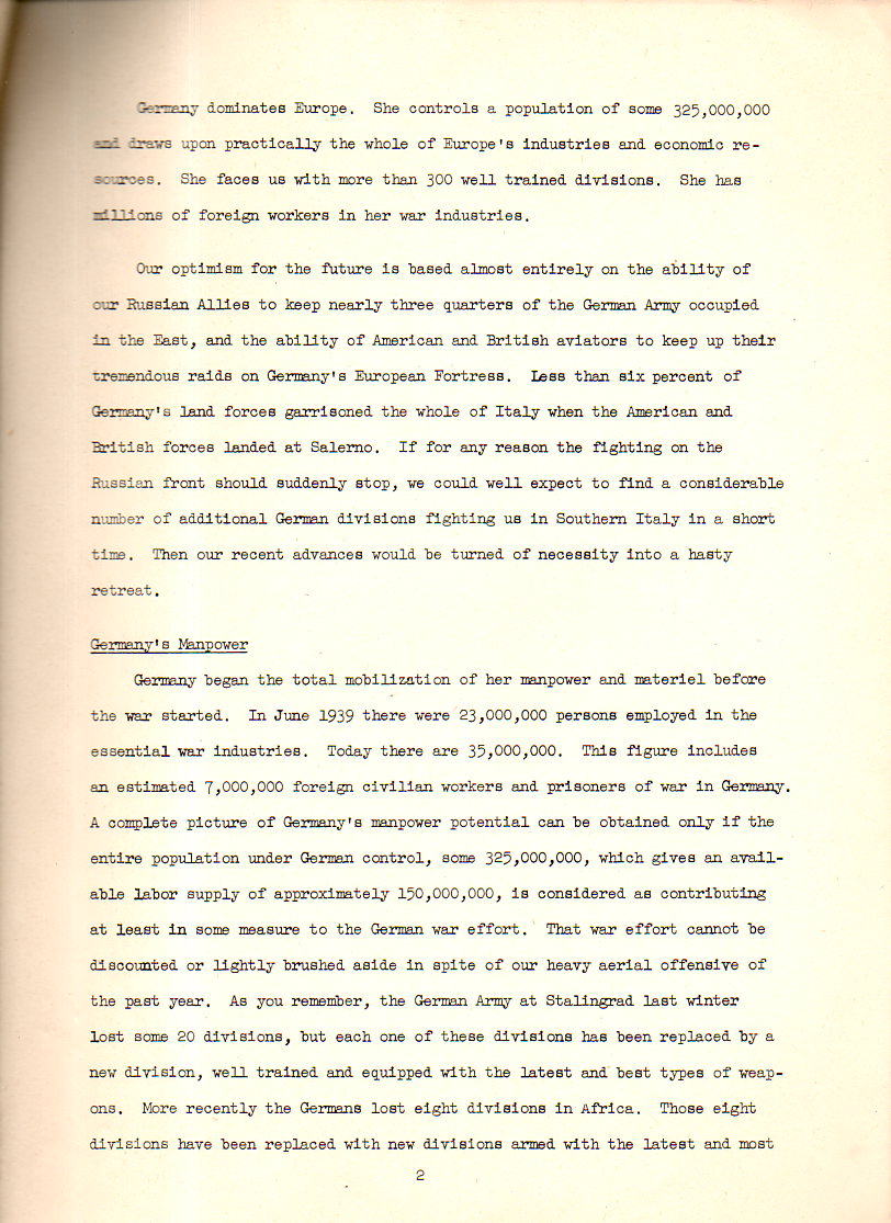 Major General George Veazy Strong (USMA '04), in 1943 as the Assistant Chief of Staff of the Army Intelligence Unit (G-2)--a position of enormous importance--delivered his very sober and reasonable summation on the strength of the Axis forces before the U.S. Congress (on October 20 and 21, 1943). which was printed in this report. (It is of historical and bibliographical interested to note that this document was in the library of the Office of Strategic Services (the O.S.S., the precursor to the C.I.A.) before it was sent to the Library of Congress and deaccessioned.)