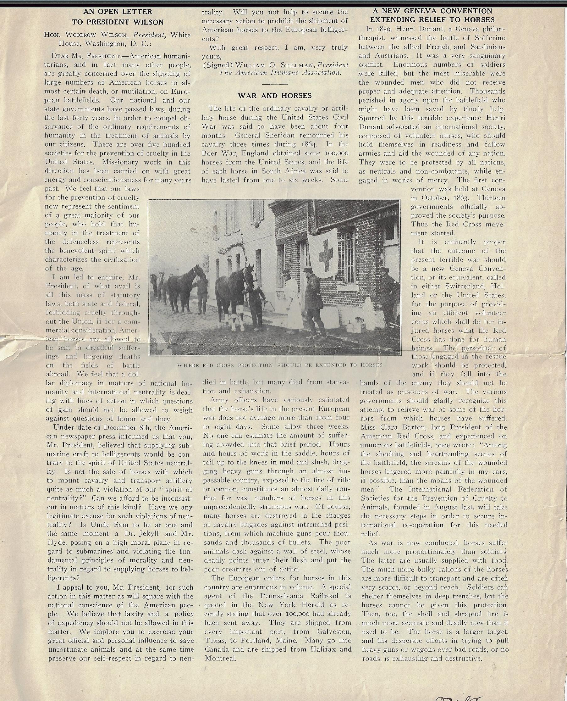 I'm just sharing this document on a subject that I've never thought about, and now that I have a chance to think about it, I really don't want to...it is just a tough go, especially considering myself part of what is a horse family with two dogs and four cats. At the very least I can reproduce the document for this rather forward idea, which was published in 1915, one year into WWI.
