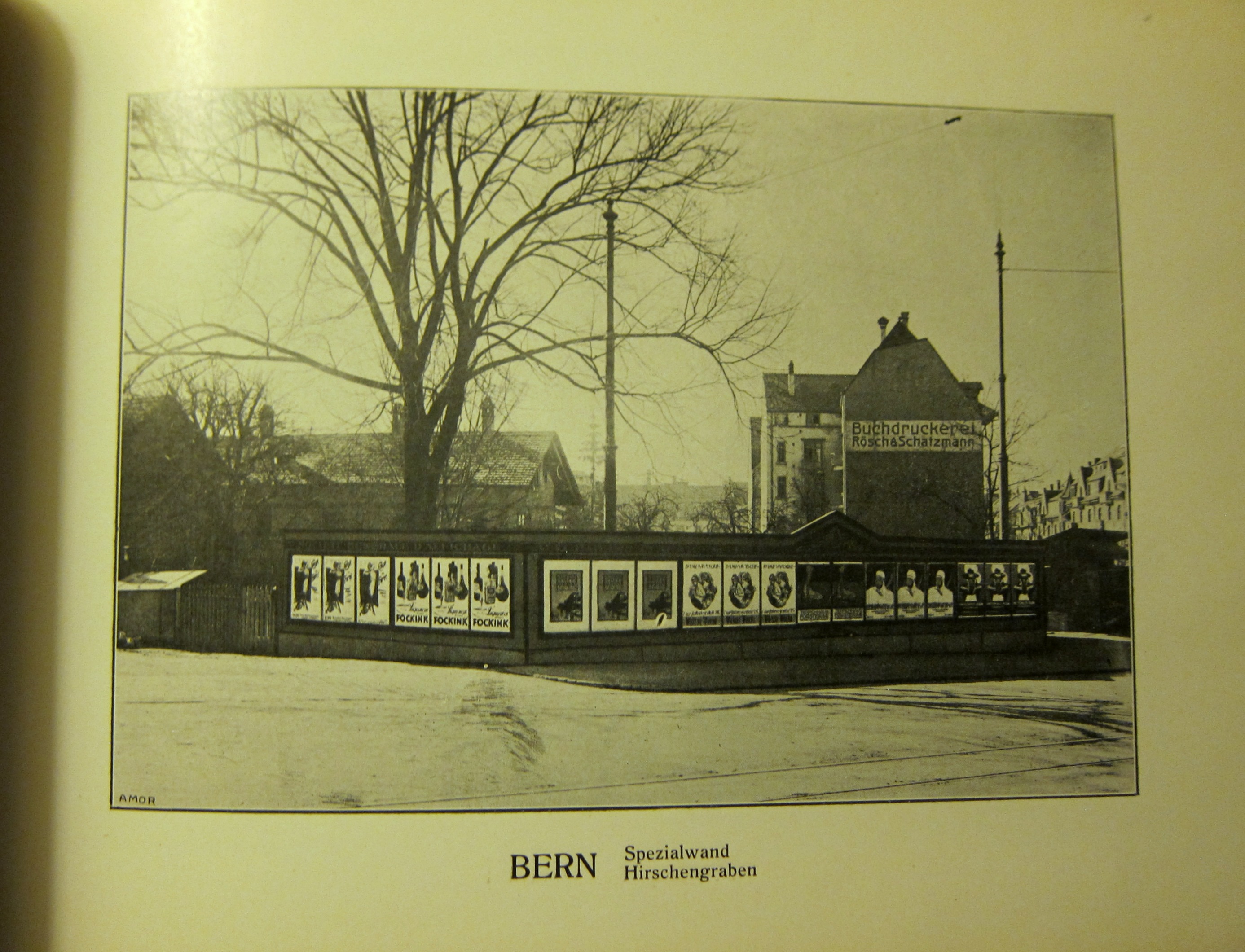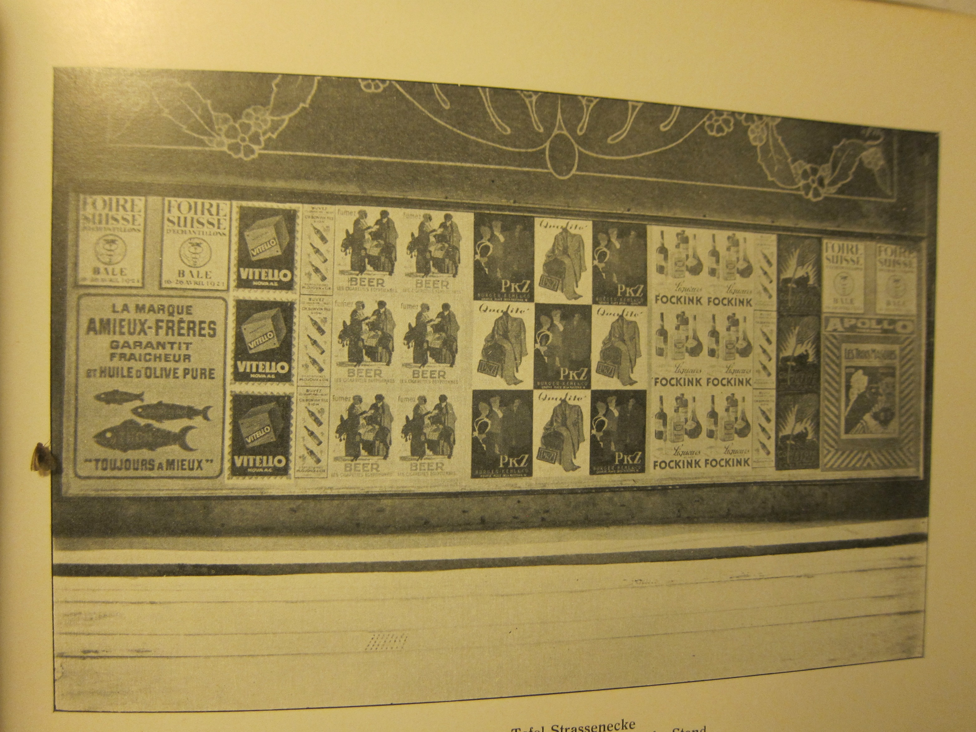 Das Plakatwesen in der Schweiz. Allgemeine Plakatgesellschaft. Printed by Sonor in Geneva, circa 1928-1932 (?). 17x24cm, 16 leaves, all of which are photos of outdoor poster advertising (as seen in the examples here). Bound in paper wrappers with a cord tie. $250