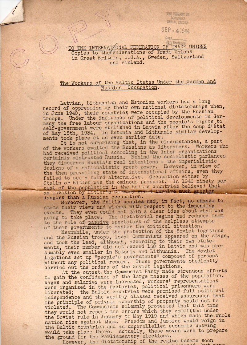 ITEM: Report of the Committee requested by Gen. Dwight D. Eisenhower through the Chief of Staff Gen. George C. Marshall to the Congress of the United States relative to atrocities and other conditions in concentration camps in Germany. (Alban W. Barkley.)8x5 inches, 15pp. With the original Congressioonal mailing envelope. Rare i the original format. $500