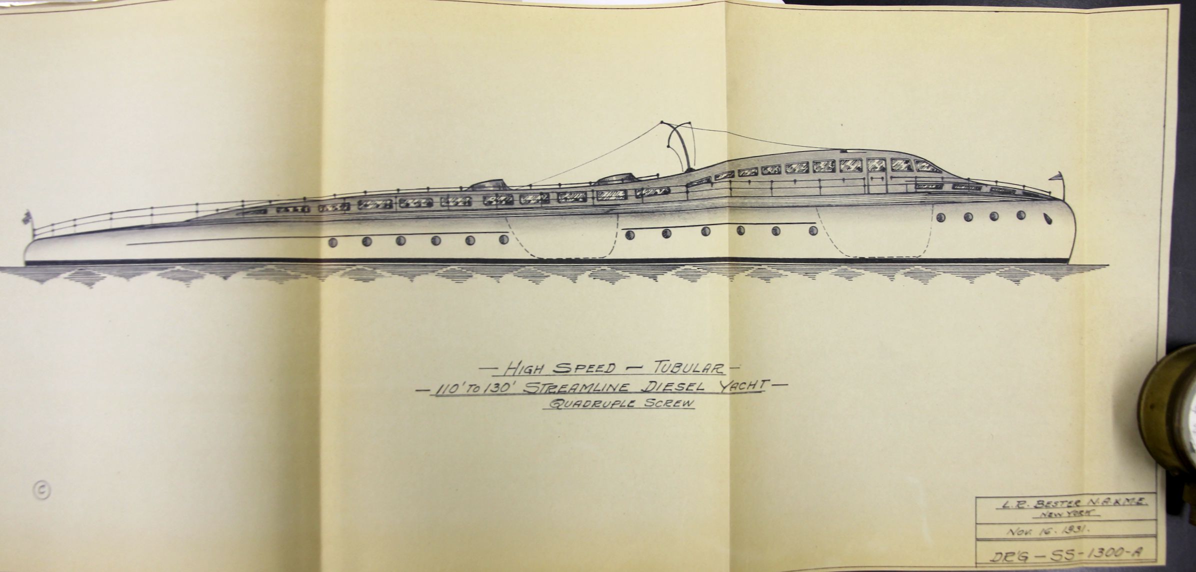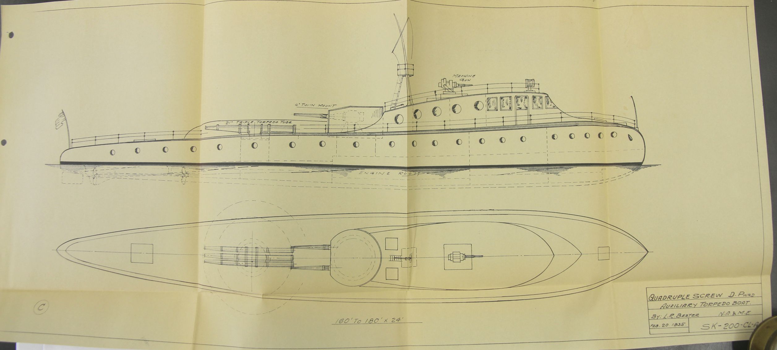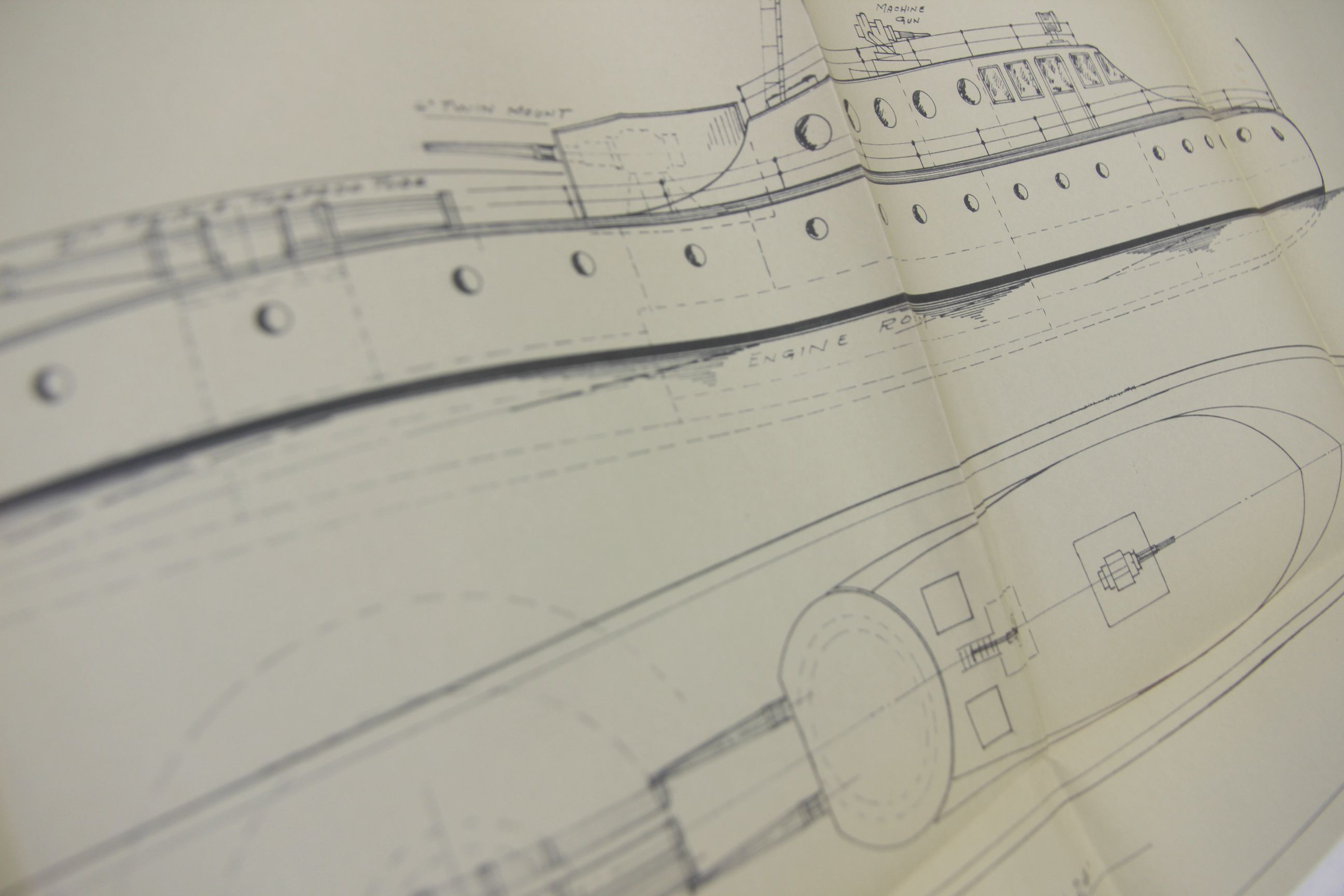 Original drawing on oilskin of a device used to raise the propeller of the HMS Esk, an early-use example of a modern screw propeller, 1854.
