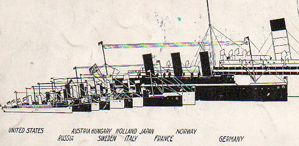 Next comes the HMS Mauretania, again form The Illustrated London News right at the time of its record-setting speed attempt to cross the Atlantic in November 1907. The ship was long (almost 800 feet) and about the fastest ocean-going ship in the world,. crossing and re-crossing the Atlantic in 12 days.