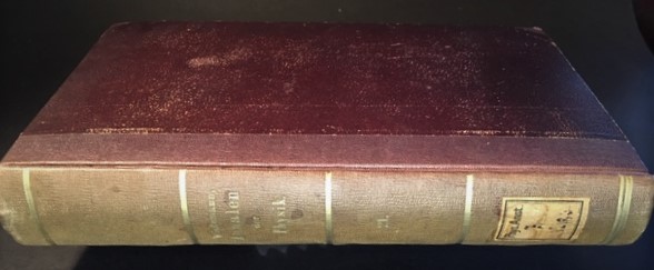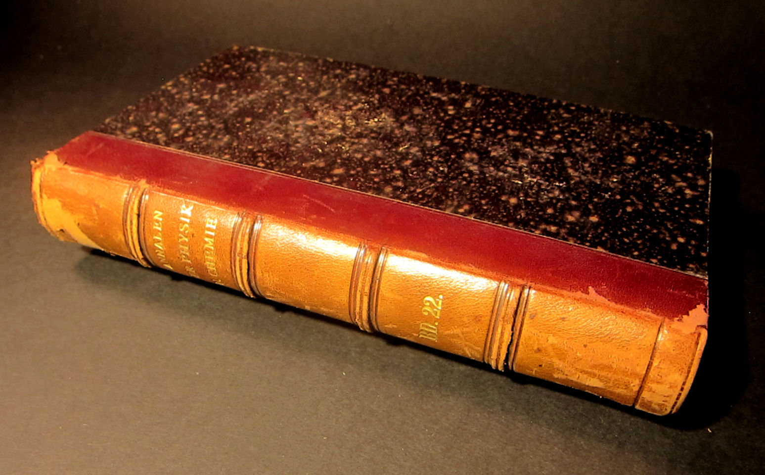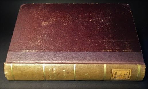 14 major papers (in 12 different weekly issues) in the history of nuclear fission, all published in Comptes Rendus hebdomadaires des Séances de l'Academie des Sciences, volume 208, January-June 1939, 2250pp, a single bound volume, thick and stout. Ex-libris, with a bookplate--also, each title-page of each weekly issue (of which there are 26 in this volume), has a small round rubber stamp of the library. Cloth binding. ca. 1950. Nice condition. There is a faded, old vertical fold that extends through the text, no doubt from when the original owner folded the issues in half...over the years in binding, the fold is mostly gone. $1500