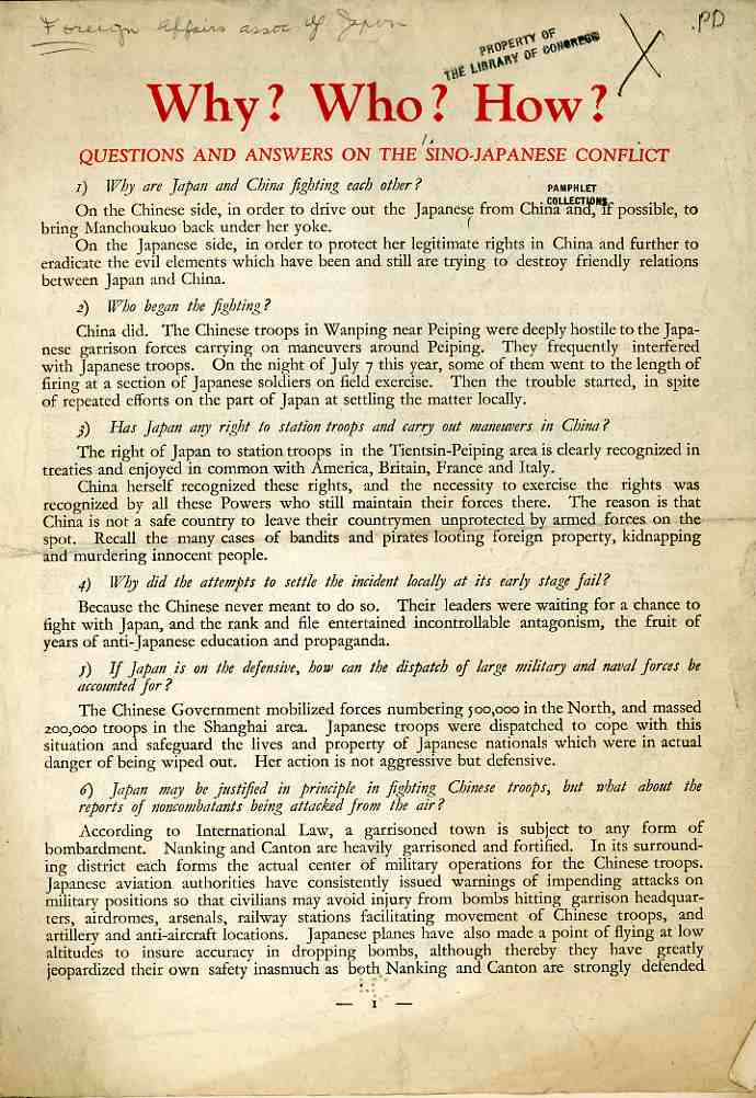 Lechner1, John R. The Inside Story of our Domestic Japanese Problem. (1944) American Legion of California. 10”x 7”, 18pp. Provenance: Kilsoo K. Haan2, to Phillip H. Cummings, who gave this to the Library of the Office of Strategic Services (OSS, precursor of the CIA), and from there to the Library of Congress. Rubber stamps for the OSS library and for the Library of Congress.
