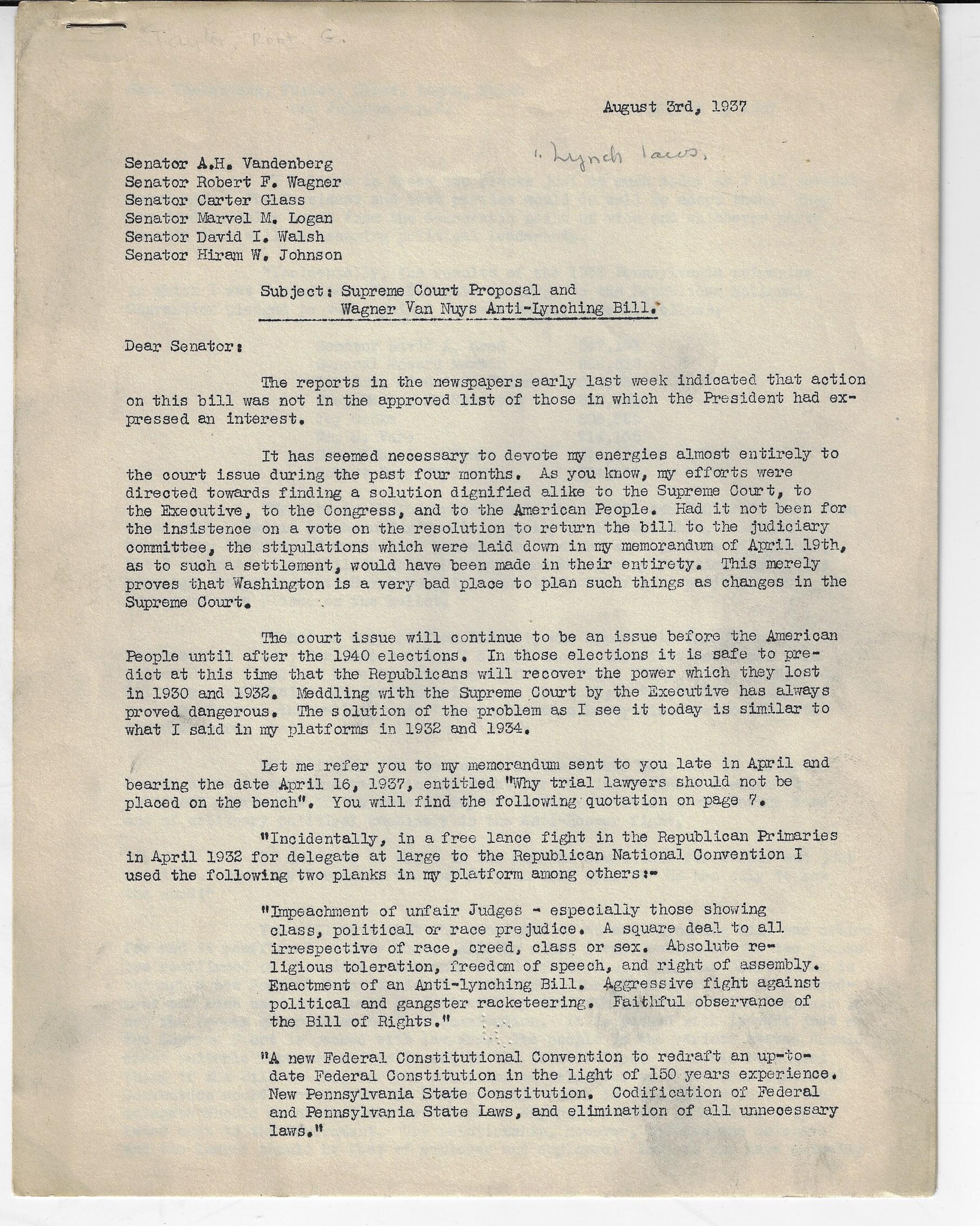 Robert Taylor Gray, The Supreme Court Proposal and the Wagner Van Nuys Anti-Lynching Bill.