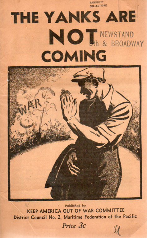 "Mike Quinn". The Yanks are Not Coming. 1940. Published by Keep America out of War Committee, 1940. 15pp. Printed wrappers. Rare. Only a few copies located in OCLC/WolrdCat. $125