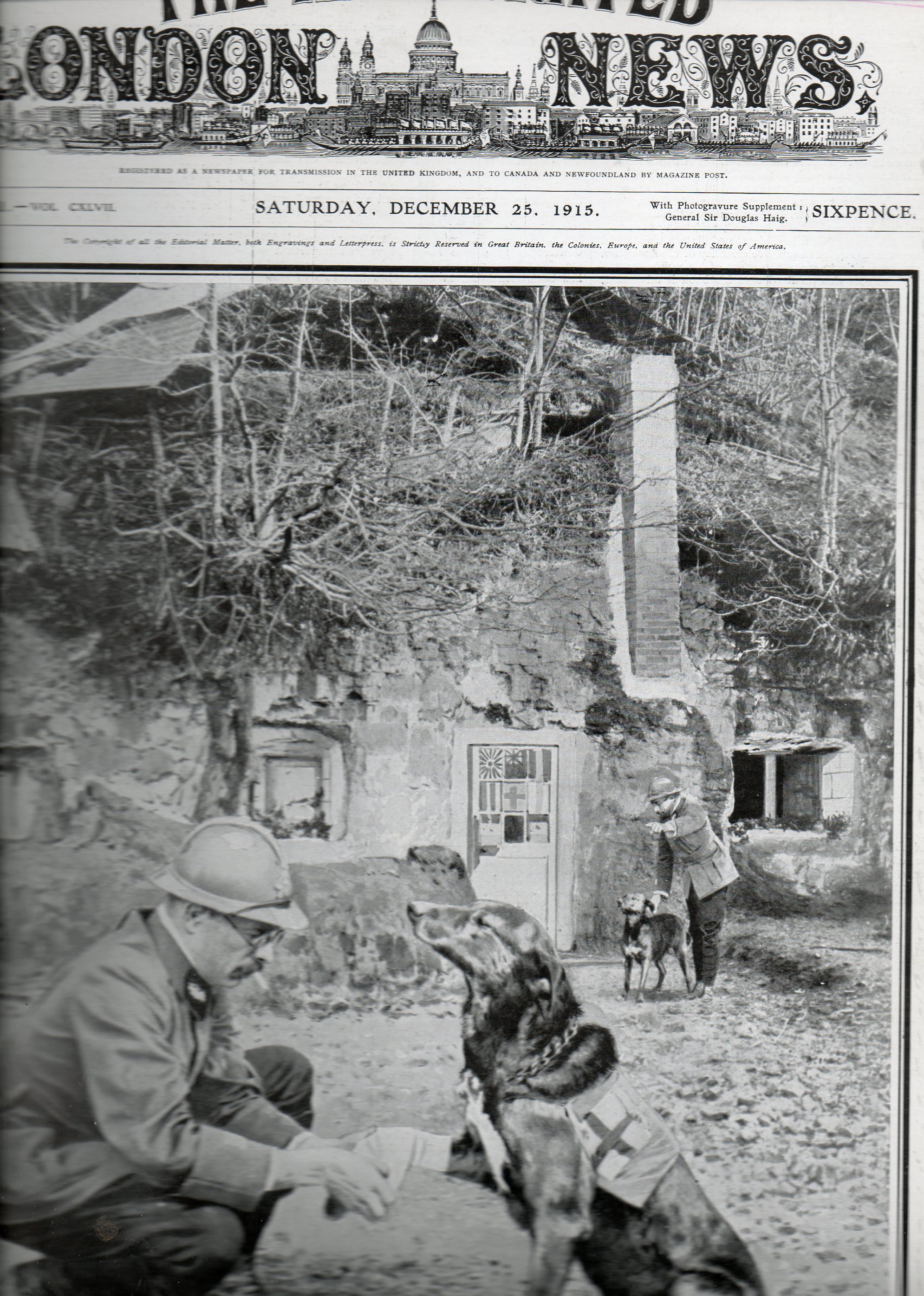 Shifting species a bit, The Illustrated London News turned its attention to a full-page story on war dogs for its Christmas issue of 1915. Here a French doctor ministers to the wound of a medical helper dog--one of thousnds who saved the lives of soldiers time-and-again.
