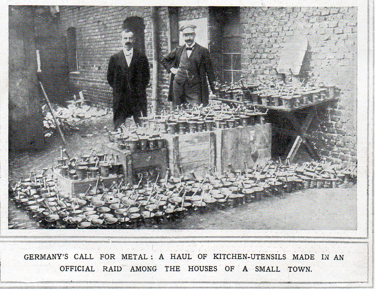 On the other side of the line, the Germans were tyrying to utilize every bit possible as well--here's an example of a round-up of metal goods taken from the kitchens of a small town (looking ,mostlly like mortar and pestel sets). In towns throughout France, on the other hand, church bells were collected and stored away, hidden from possibel capture and melting by German troops.