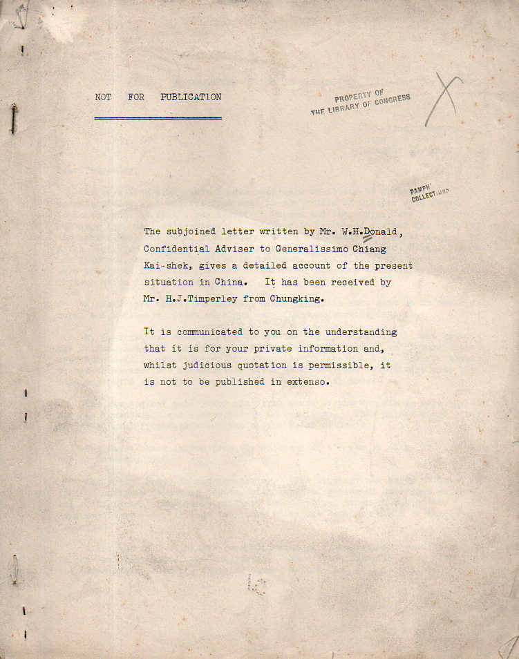 Writer Sees Improved Cooperation in Campaign against Japan. January 22, 1944. 11x8. 1pp.