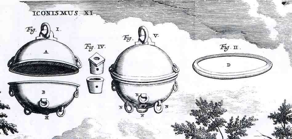 pressure operating against it (um, the vacuum). The "floating" bits in the sky were an exploded view of the sphere that was the subject of the experiment.