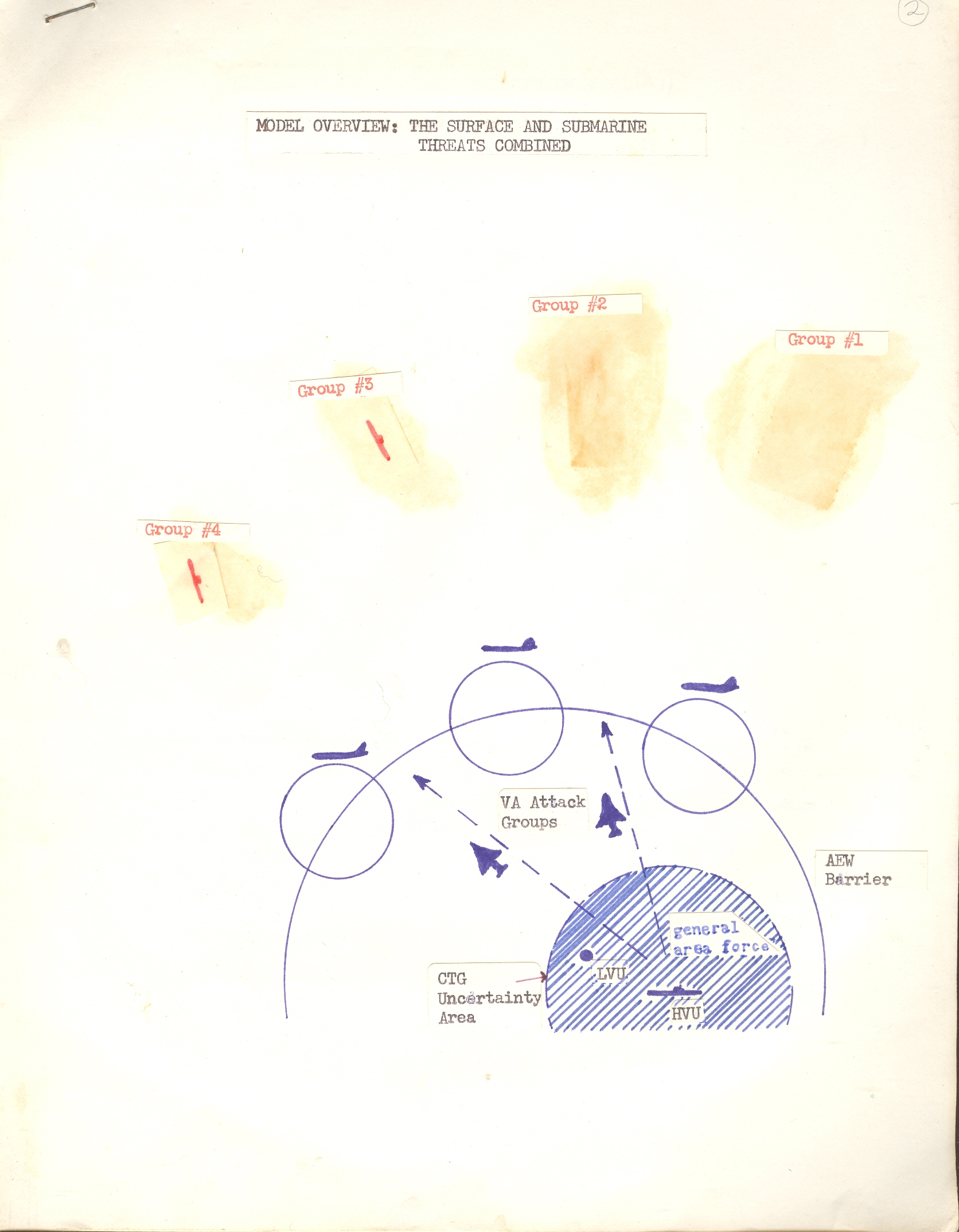 These seem to comprise something like author/speaker’s notes for overhead illustrations for a presentation on a computerized system for the receipt and processing (and summarizing?) of tactical intelligence data on the enemy’s intent on locating and destroying submarines.
