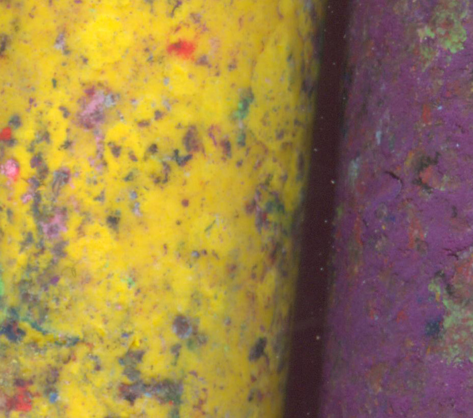 I love that each crayon clearly shows the change it has taken on as a result of contacting other crayons. Gorgeous tiny flecks of color, as each nubbin reflects which other ones it has been close to over the years.