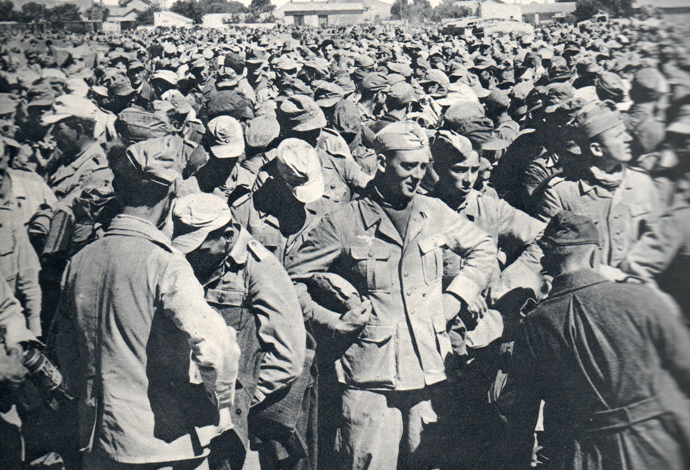 The result of this series of battles ended up in May, these pictures showing what defeat looked like to 230,000 German and Italian prisoners, though the vast majority were German. Its really a curious display of facial expressions in the many dozens of details that can be lifted from these mass portraits. I’ll make an semi-reasonable statement–nobody really likes/wants to be taken prisoner in war, though I guess time and place and circumstance are factors that can loosen up that observation. (Germans were much more interested in being captured by the Allies as they fled westward in Berlin and the rest of the country as the Soviets began making their own way towards the heart of Germany, for example.) Perhaps what looks like an element of relief in the close-ups of these prisoners really was that; that their time in the desert was simply expended, and that the prospect of their surviving the war had just been decided, positively.