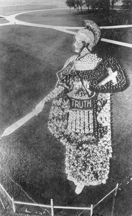 The Woodrow Wilson living portrait was made with 21,000 soldiers at Camp Sherman, Chillicothe, Ohio, in 1918.