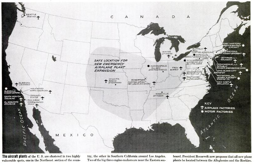 Roosevelt and his adviser knew that America was headed into conflict, and knew that the country needed to get onto a war-time production basis. One way to begin preparations was for FDR to call for the increased production of the newest and one of the most important aspects of modern warfare, the airplane. And not only an "increase" in production did the President call for, but a mountainous bump, an order of magnitude more in manufacturing of military planes. Earlier in 1938 the call for a 5,000-plane-a-year air force was shot down as being unrealistic--and perhaps so, even though the Nazis were just at the beginning of their outward thrust. So in May, 1940, Roosevelt stepped up and asked for 50,000 aircraft.