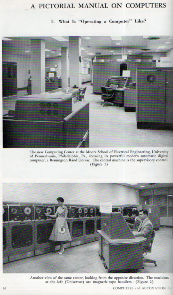 "What is 'Operating a Computer' Like?, showing the "new Computing Center" at the famous Moore School of Electrical Engineering at the University of Pennsylvania, the place where most of modern computing in America was born in 1944/5/6.