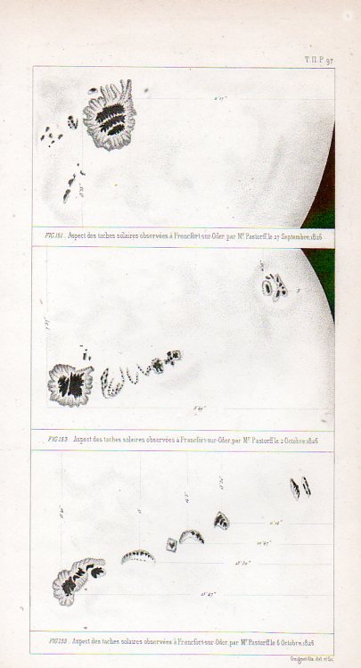 coming from this engraving relating to sunspots from the 1850's, though it looks more a mor modernist, Absurdist romp.