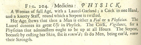 These images come from a later (and English edition) of Cesare Ripa's essential keybook to Renaissance iconogrpahy, the Iconologica overa descittione d'imagini delle virtu, viti, affetti, passioni humane...first published in the early 1590's with Ripa's artwork. I don't much like the English version of his work, nor do I care that much for the artwork (inferior in most ways to the great craftsman-like feel of the Renaissance images), though it does serve the purpose of place-holding the symbolism and explaining the elements of the icons.