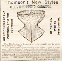 Invalid traveling chairs chairs, corsets that fits as close as a glove; Nillson Elastic (for holding up lingerie),Farmer's Champion Shoe (and the "getting up clubs" for sales and distribution of said shoes)...