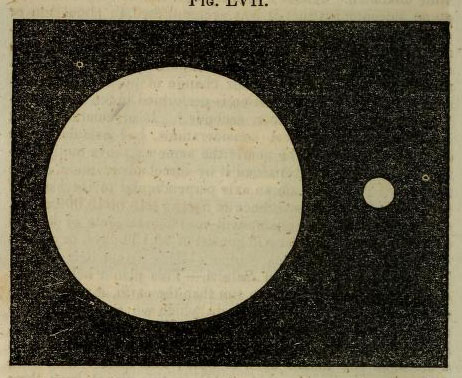 Thomas Dick's Celestial Scenery, or, The wonders of the planetary system displayed was published by Harper & Brothers in New York in 1838 is a good example for a home of some of these flashes of future brilliance. What we're seeing in the pages of this chunky book--which was an influential object in the early reading of a number of people who were to become influential astronomers, one including E.E.. Barnard--are lovely, simple, and include some relatively simple images of size comparisons. The result seems to my eye to suggest Suprematist art, geometrical art that would come into being another 75 years hence or so. (This movement was founded by the great Kazimir Malevich in the 19-teens, who said of it: "Under Suprematism I understand the primacy of pure feeling in creative art. To the Suprematist, the visual phenomena of the objective world are, in themselves, meaningless; the significant thing is feeling, as such, quite apart from the environment in which it is called forth.") Of course the Dick images were simple comparatives and not-yet-art--but they certainly do suggests themselves as something more than what they are. The full text of the book is located at the Internet Archive, here. (Thanks to Trevor Owens and his interesting Pinterest collection here who brought my attention to the Dick book via images of the Martian canals.)