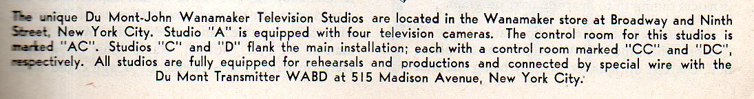 The dreammaking units responsible for creating the bigness of artificial life were quite modest in 1946, as we can see in the pamphlet's wonderful plan of a television studio: