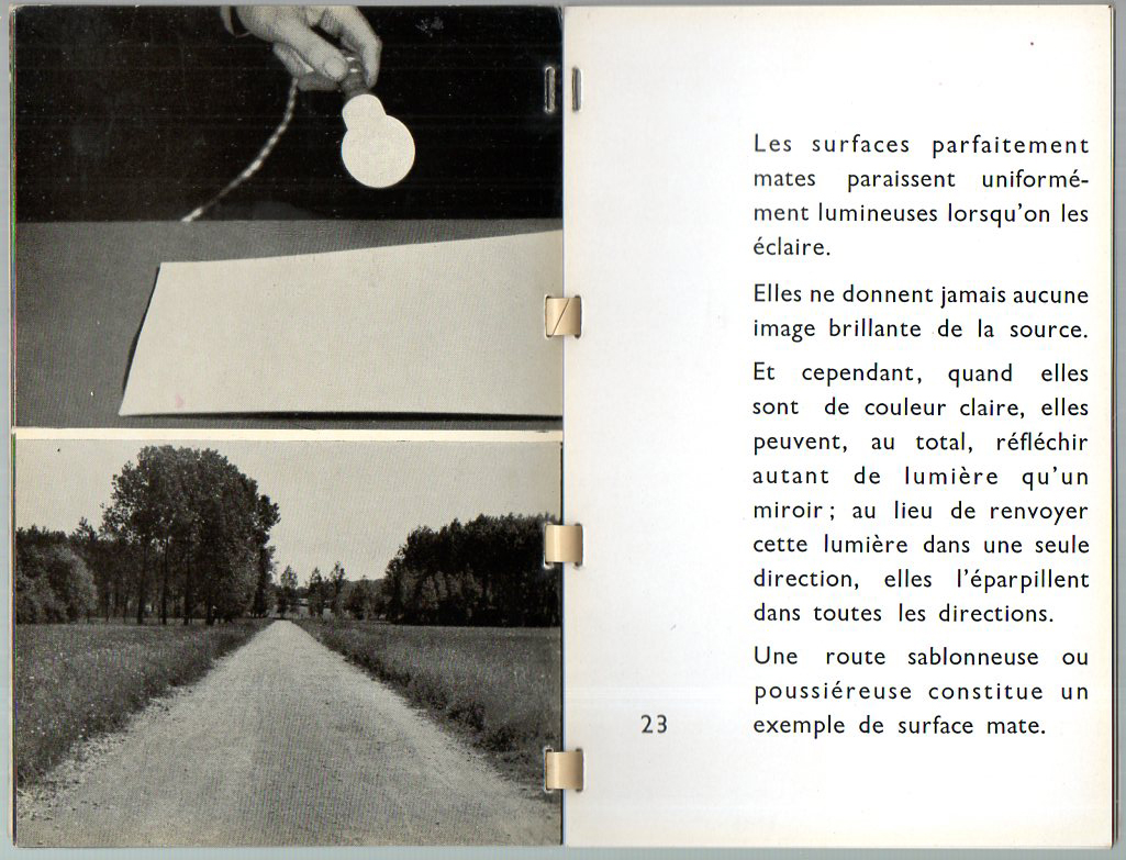 L'Eclairage, published by la Societe pour le Perfectionnement de l'Eclarage, was printed in 1937, and addressed the use and beauty of proper lighting. The photography is the work of Andre Vigneau, French photographer/film-maker/sculptor (1892-1968), who among many other things was one of the first to design photographic covers for books. This little pamphlet outlines the importance of lighting in photography--aside from that, though, its principal interest for this blog is the absurd/surreal nature of the photographs when taken away from the text and out of context. The image are unexpectedly interesting as cleaved-away photographic documents of unusual perspectives.