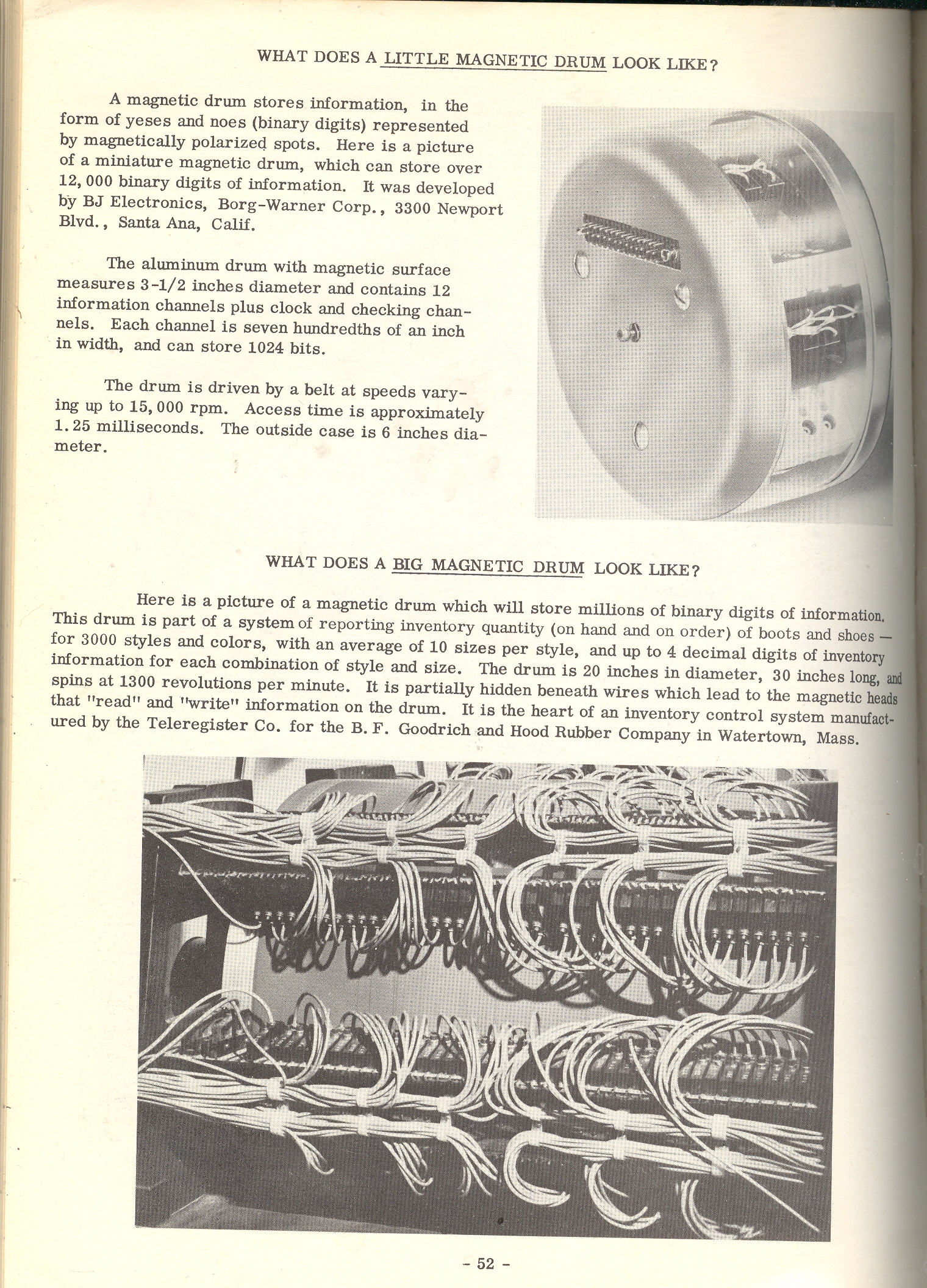 At a time when computers were big, heavy, electrically-scented, hot and expensive (ranging into the hundreds of thousands of 1953 dollars, many millions in 2013 bucks), and coming at a time when very few individual companies (exterior to the military/industrial sphere or insurance) actually owned one of these machines, Lawrence Wainwright wrote a useful guide to potential computer-buyers, “Digital Computer Questionnaire”. Appearing in the world’s first publicly-published computation/computer journal, Computers and Automation, Wainwright sets out in six single-spaced pages a very tight and logical set of questions for the would-be buyer of one of these early god-sent beasties. I've illustrated the non-illustrated questionnaire with a series of images from another article found a little deeper in the same journal, "A Pictorial Introduction to Computers", which appeared in June, 1957.