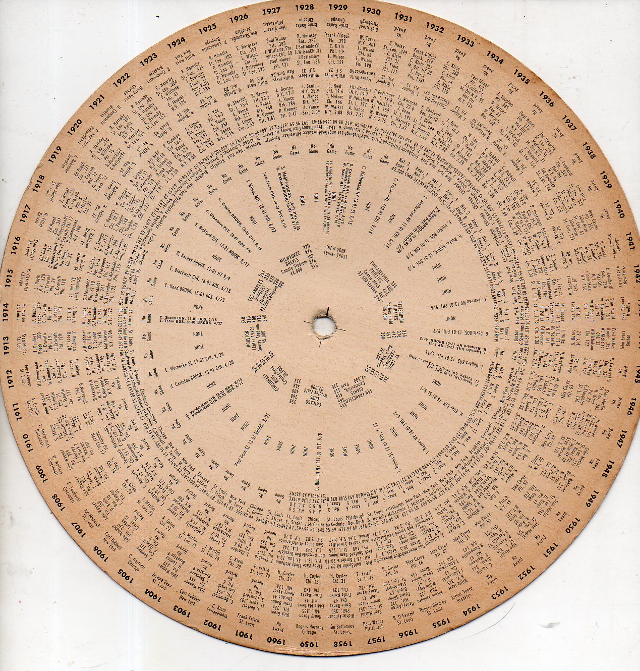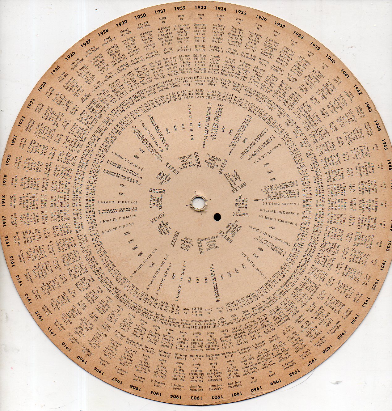 I've accumulated 50 or so paper computer/calculators of various shapes and sizes and descriptions, ranging from calculating the mileage for a 1959 Rambler, the ground speed for a B-25, radiation dosimetry, one-handed bridge, nuclear weapon yields, political history quizzes, and many others--including this "Ball of Fame" baseball historical paper volvelle.