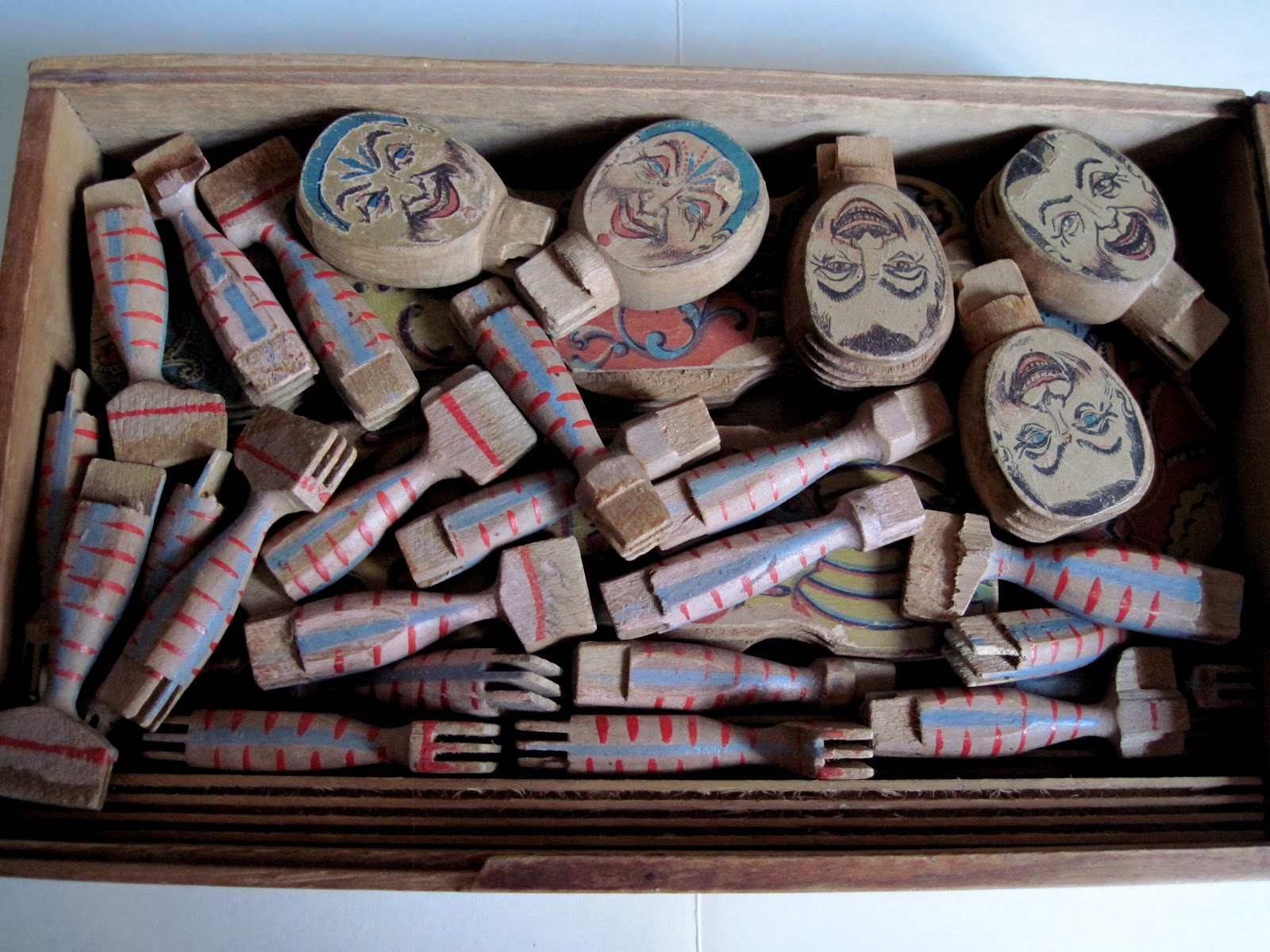 The toys--Crandall's Acrobats, patented in 1867--came in boxes, a number of "acrobats" per box, as seen in the following post from Tracy's Toys blog: