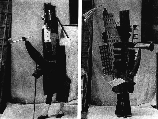 One of the great powerhouse collaborations in the history of earlyish modernism came on 8 May 1917, in the performance of the 15-minute operette, Parade. Spearheaded by Jean Cocteau, the piece used stage and costume designs by Picasso, was scored by Erik Satie, and performed by Diaghilev's Ballets Russes. (It was not received indifferently--there was a major upset in the world of the critics and many hated negative response from the audience, evidently much like that received by Stravinsky's Rite of Spring at its premier seven years earlier, also featuring Diaghilev's Ballets Russes.)