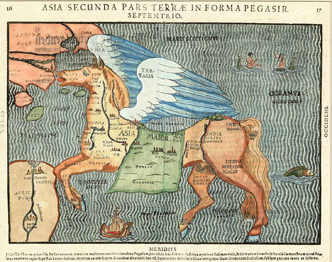 And then there's the mythological part, with Pegasus, with Heinrich Bunting's Asia Secunda Pars Terrae In Forma Pegasir (1581):