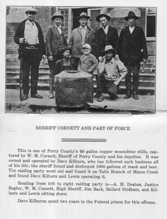 This fine picture of Americana comes from the neighboring Perry county ("Hazard" and "Perry" both being named so for Commodore Matthew Hazard Perry) and shows a victory of the local constabulary over a pair of Moonshiners--two Mountain Men trying to make ends meet, no doubt. It seems as though the area has some history in this department, a piece of it surfacing in very popular culture in a television show called The Dukes of Hazzard, supposedly loosely based on this area (though the producers added an extra "z" and placing it in Georgia to avoid any legal issues with the town).