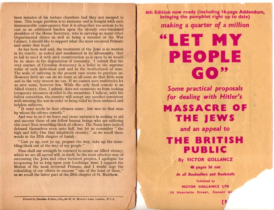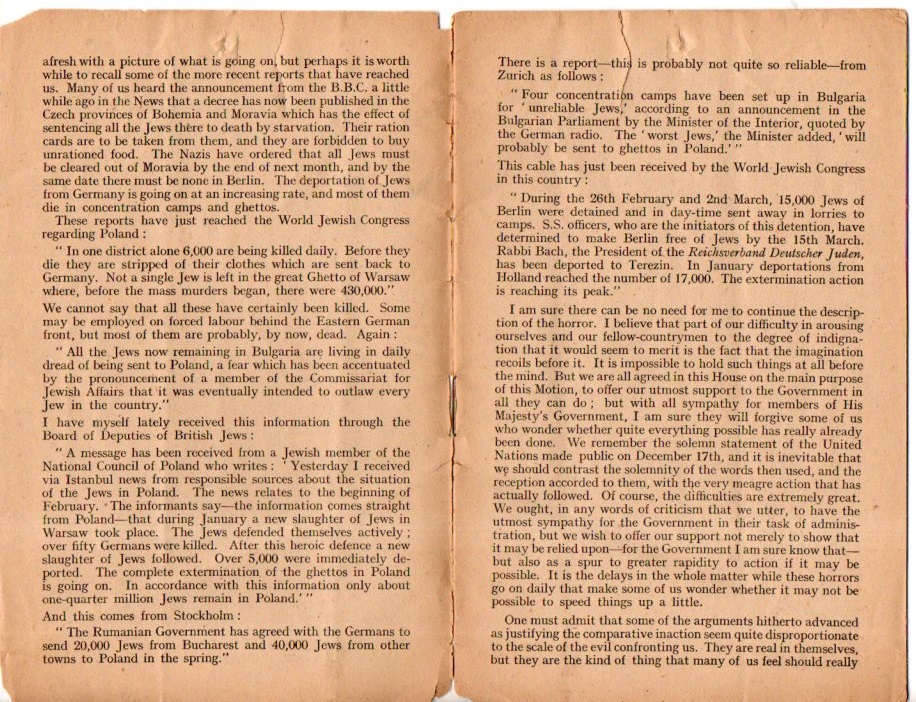 It is a very contentious issue as to whether the Allies could have taken pro-active measures against the concentration camps, and the issue of the discussion of whether help could have been given is contentious in itself. What makes this pamphlet noteworthy is that it showed there was a public display of concern during a time when there wasn't much public thinking being done on that. This is a complex issue, though I think the capacity to effect some sort of rescue of thousands, or hundreds of thousands (or millions) of people could have taken place2, though it did not, for reasons of indifference more so than for ability or capacity.