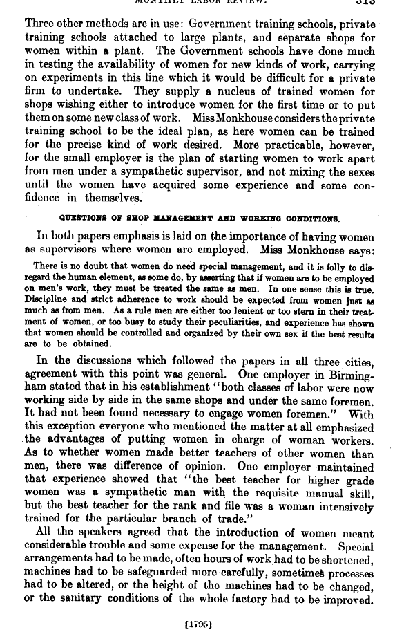 I came across an interesting little story in Nature (March 28, 1918) about women munitions workers. It is a note based on a report written by Miss O.E. Monkhouse--and as it was noted in the Monkhouse piece that it was the first paper read by a woman before the British Institute of Mechanical Engineers--and summarizes the work of a million women workers in wartime bomb factories. It is probably a valuable report for its telling of the number and nuts and bolts, and of course for the history of the introduction of women into a work environment where they had never been before, and in great numbers, but it still must suffer through the painful prejudices and opinions of the times. Ms. Monkhouse though is an elegant spokesperson and proponent for equality, and makes several arguments for the abilities of women being equal to that of men, which makes this short article well worth the read.