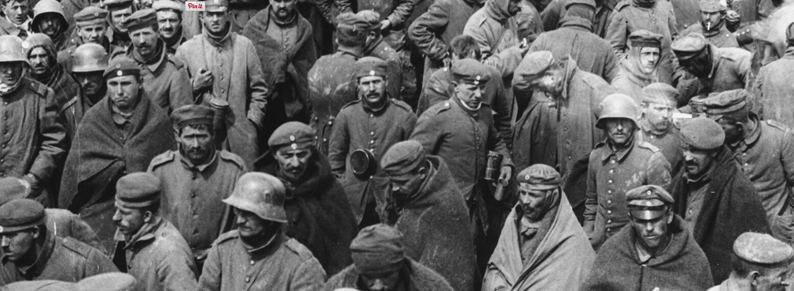 April, 1918, Givenchy Road, France--this is an official war photograph of captured German soldiers. There are hundreds of smaller photographs composing the larger full photo of this mass scene of fear, relief, exhaustion, and boredom. Everywhere a portrait, and each portrait with a different story to tell.