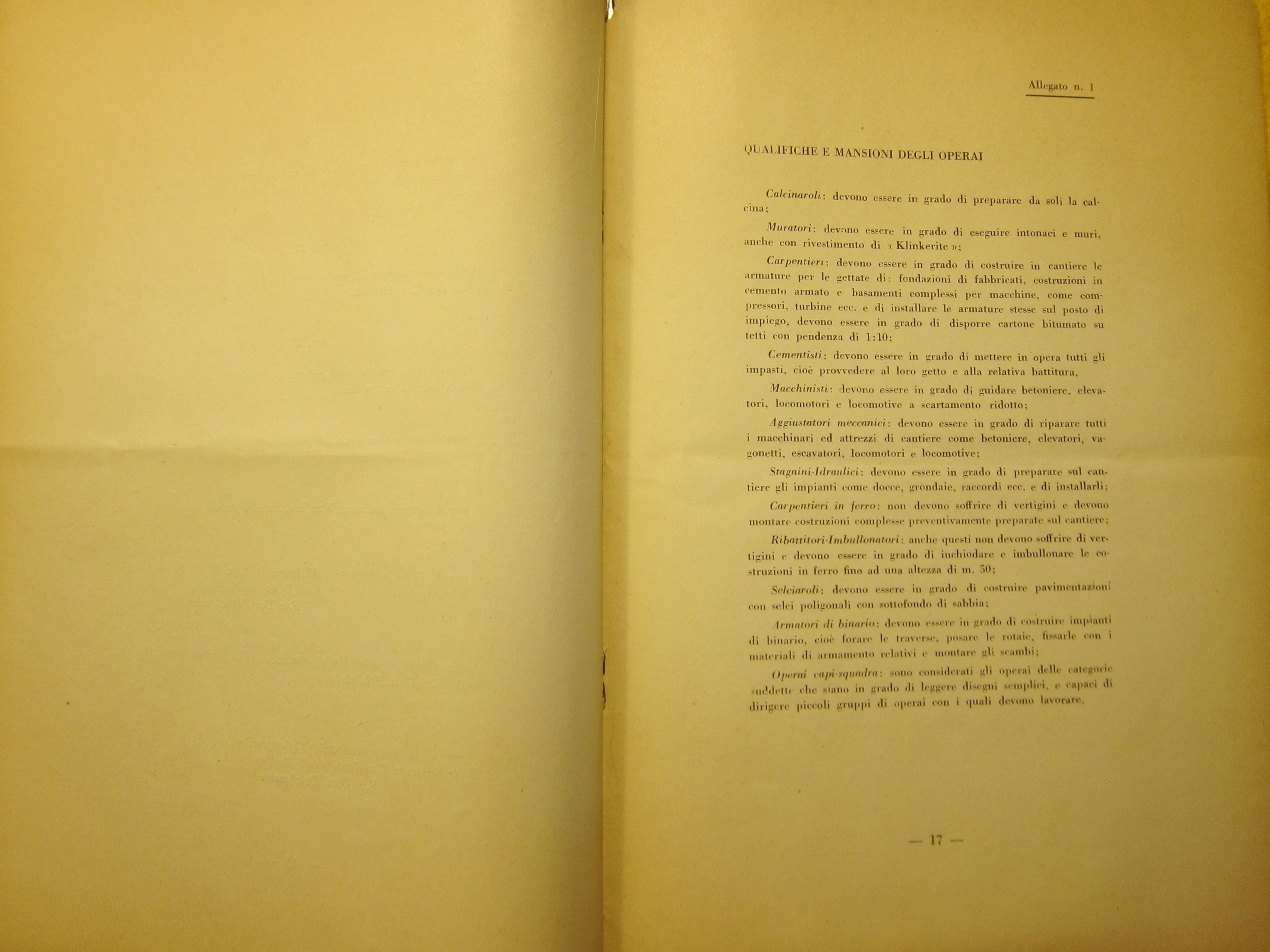 Contratto per l’escusione di lavori di construzione in partecipazione con imprese germaniche, nei cantieri di Heydebrek, Blechhammer e Auscwitz (contract to perform construction work in participation with German companies, in the yards of Heydebrek, Blechhammer and Auschwitz) It was printed by Tipografia del Gianicolo, in Rome, 1942, by the Confederzione Fascista degli Industriali, Federazione Nazionale Fascista Raggruppamento Germania. The document measures a fragile 30.5 x 21 cm, and is 29 pages long. Like dozens of thousands of other things here at the store, this was formerly in the “Pamphlet Collection” of the Library of Congress (which received the publication 12 July 1945) until we purchased the collection at the end of 1999. The full document is reproduced below.