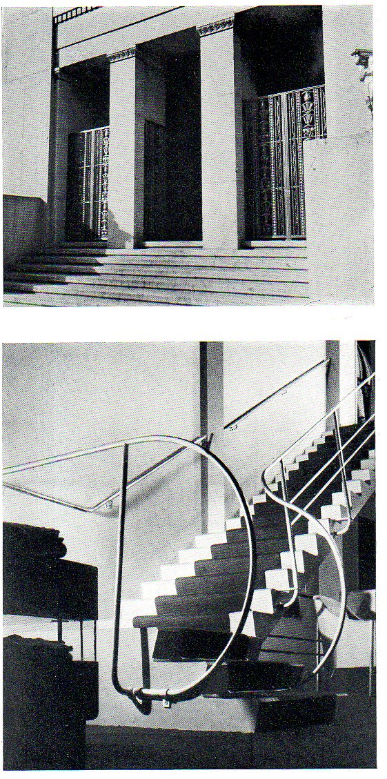 Squidward Tentacles (of Spongebob Squarepants fame) once had a dream of the future--I mean, a dream with the future in it--in which everything in the sea was chrome plated, except of course for the water. His vision (which he liked at first for its shineyness and then hated soon afterwards for it shineyness) of the future may have involved a vision of the past as well as someone else's vision of the future. Anyway it is my mentality that pulls up Spongebob when looking through this fine 1937 pamphlet1 on architectural/design uses of stainless steel, where there was so much shining and shimering matteness constructed using steel and chromium, which comes a little close to Squidward's chrome sea bed. But not really. In any event, these are lovely creations, best served up in glorious black & white.