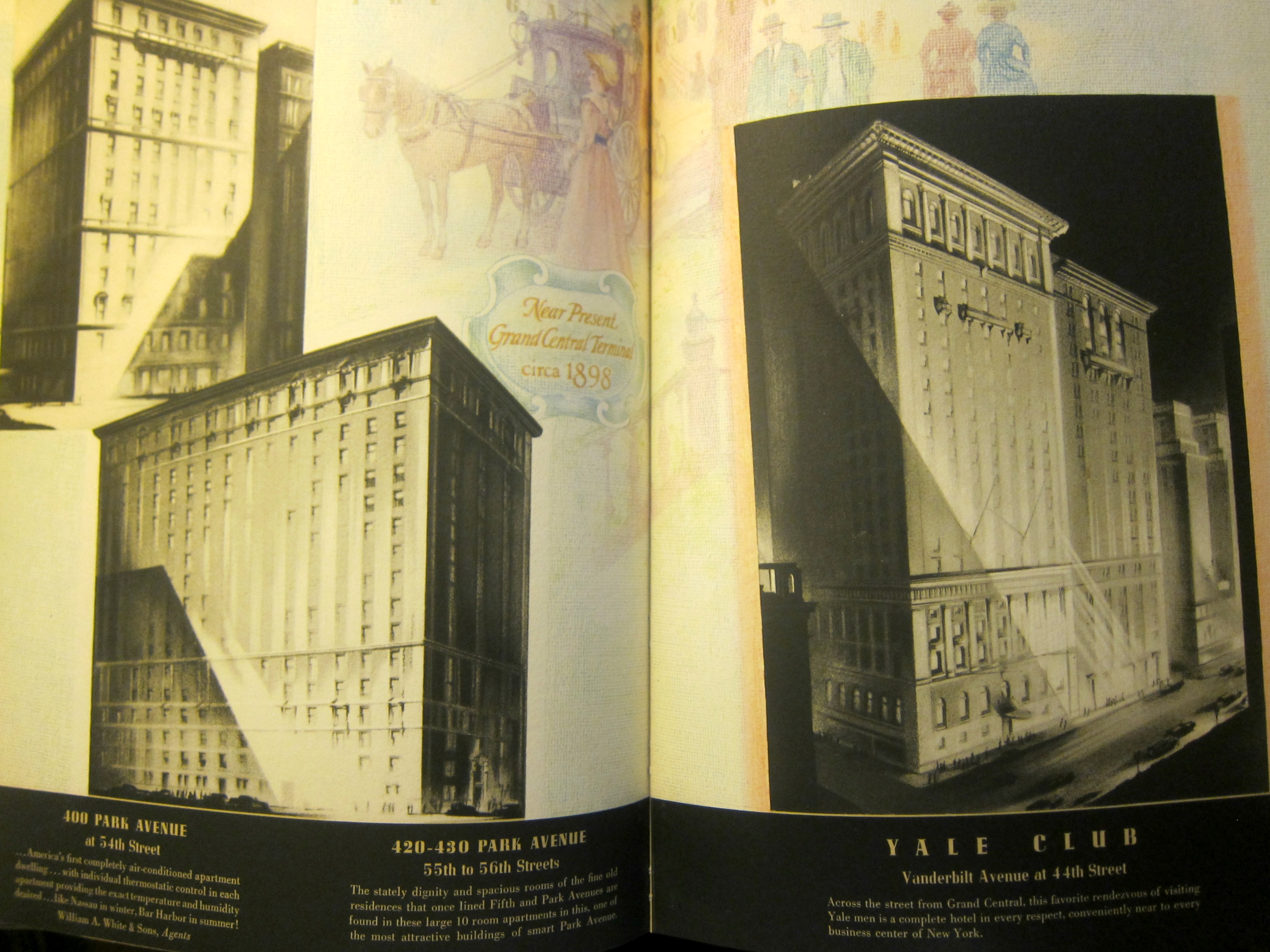 This is a very Grand-Central_terminal-centric image of NYC--and rightfully so, being one of the great buildings of Manhattan. These images come from a promotional The Gateway to a Continent, published in 1939, which is a fairly luxurious publication which I think was intended for the appreciation of possible luxury accommodations for visitors to the 1939 New York World's Fair. The result is an overview of the venues on Lexington/Park/Madison from 42nd-51st streets. There's a great two-page map that shows this section in detail and which leaves out virtually everything else save the text mentions of some like "the Chrysler Building", "the Empire State", and "Penn Station" without images of them.