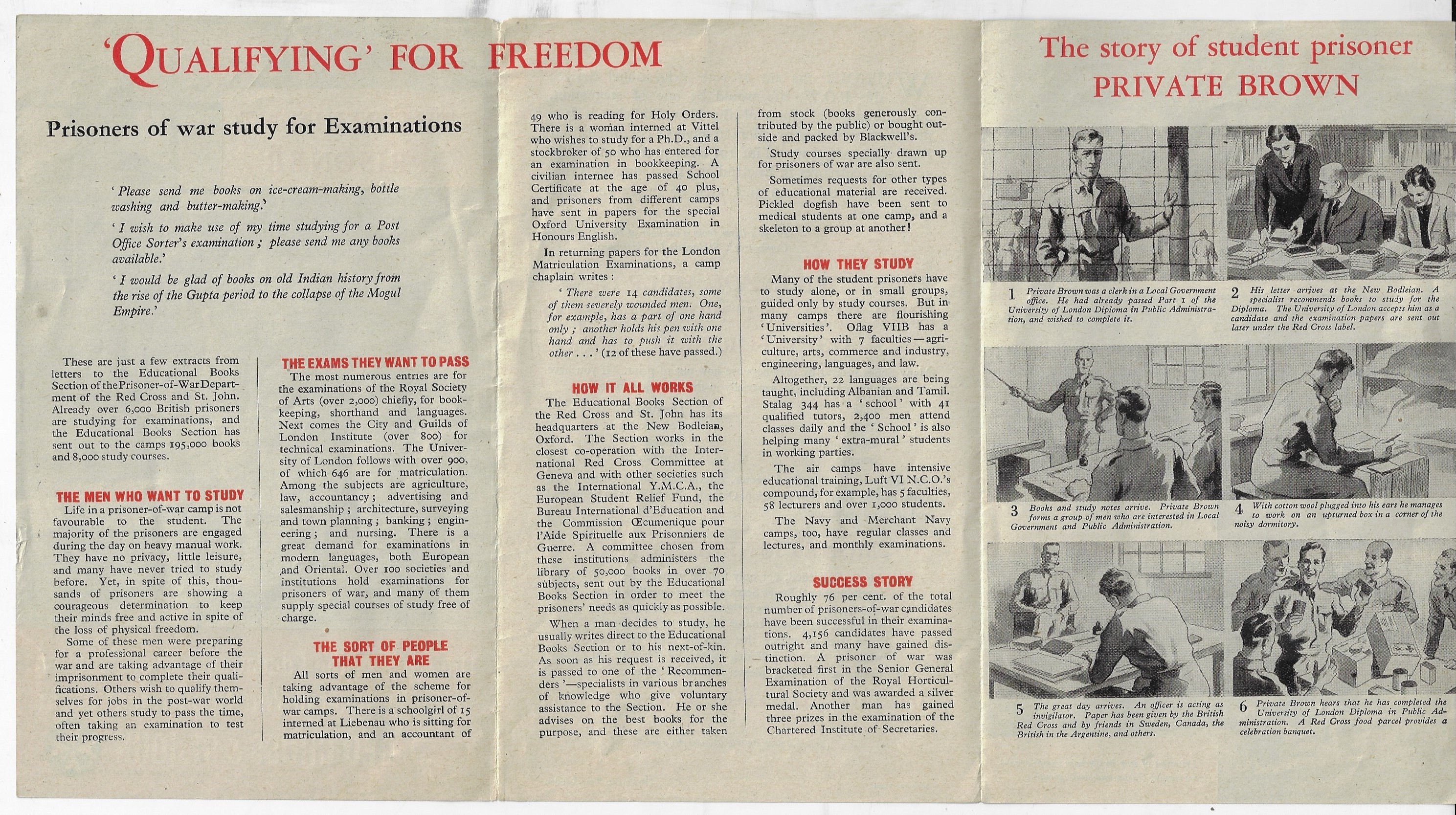 The Student Prisoner. The Work if the Educational Books Section of the Prisoner of War Department of the Red Cross & St. John. March, 1944. 6pp, trifold.