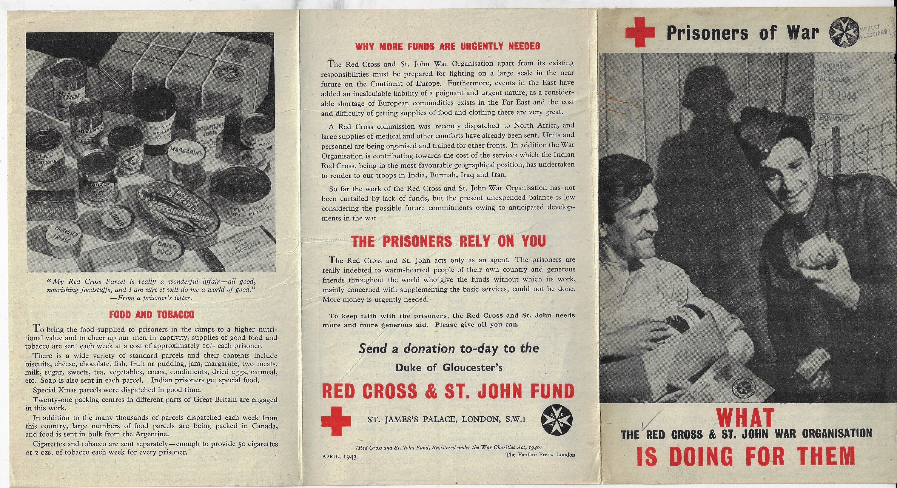What the Red Cross & St. John War Organization is Doing for Them. Prisoners of War. April 1943. 6pp, trifolded. Excellent piece of home-front propaganda.