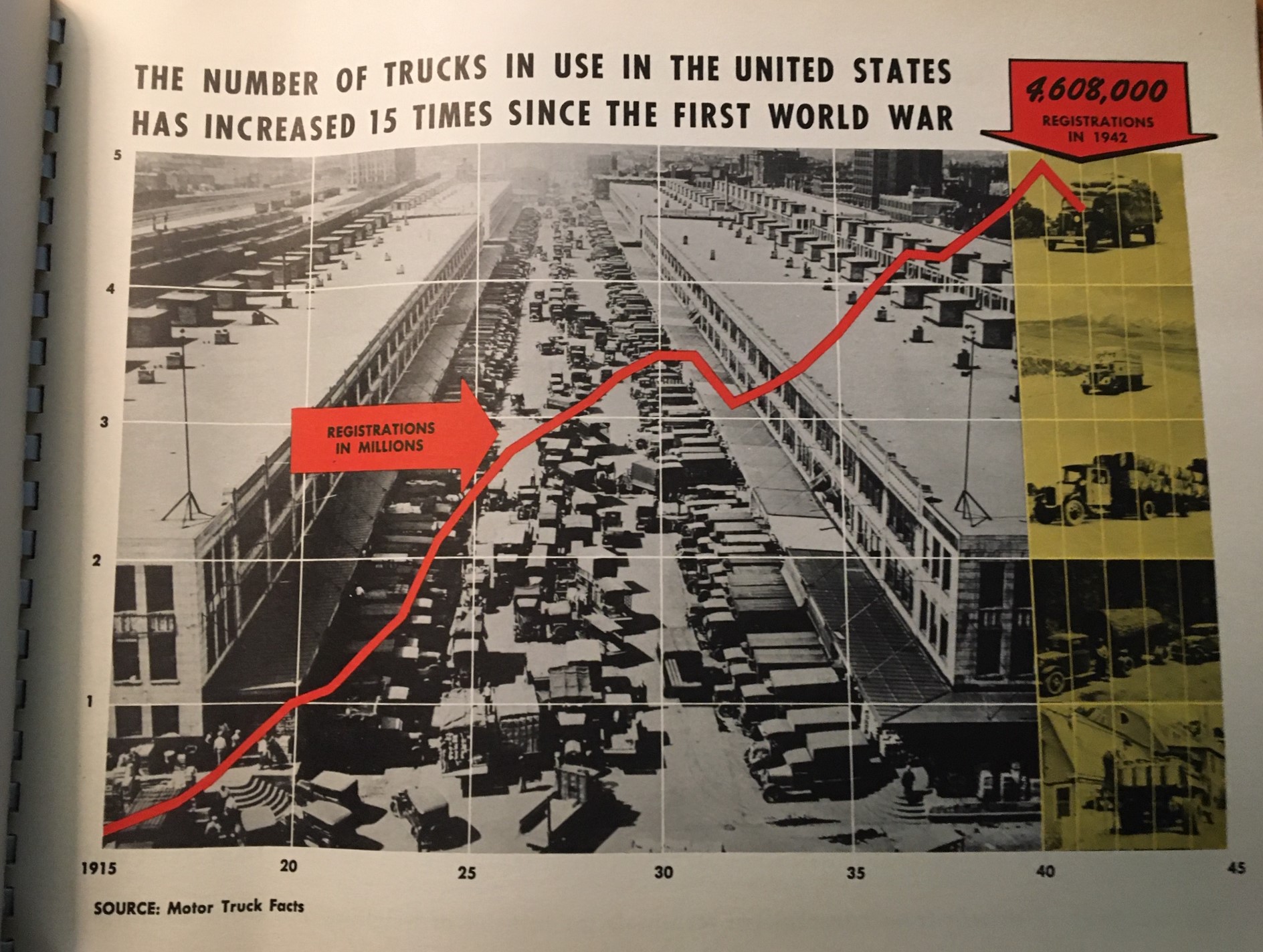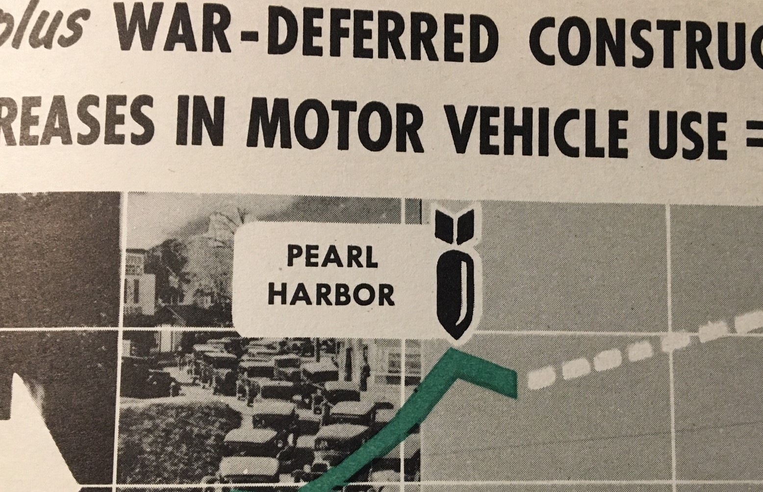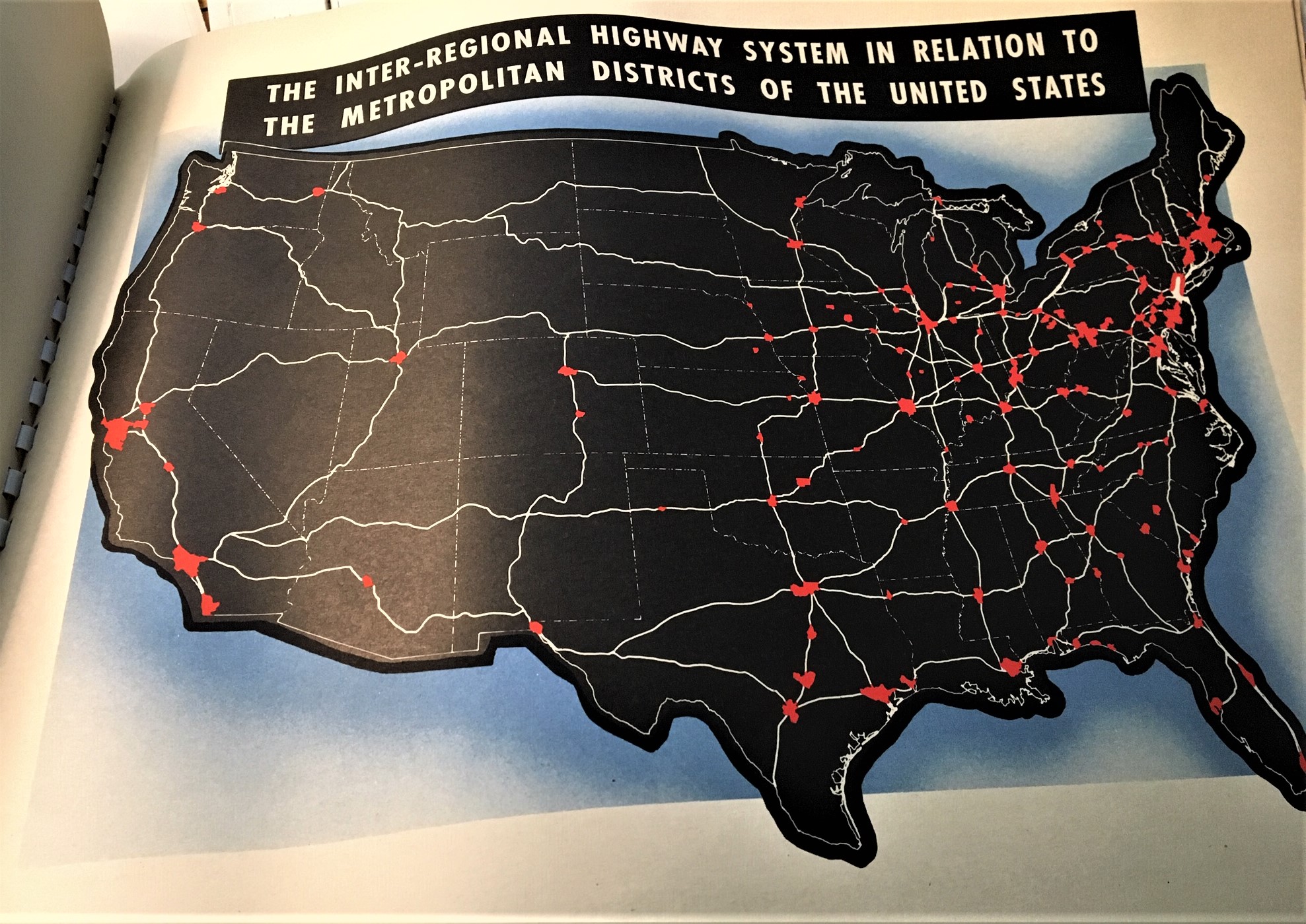 I've made a number of posts to this blog on color and the lack of it (for example, see the series on "Color and its Advanced Abuses") mostly concentrating on MONUMENTAL color or the lack of it when it could have been there (this, for example, exemplified in a beginner book on color theory with illustrations in glorious black and white). Today's example comes from a oversize pamphlet called The Story of Highways, which I think was a vehicle used to deliver highway stats to crowds of congressional interest. The 16"-wide pamphlet contains 26 graphs/charts that reproduce 30"x 40" posters used in a presentation somewhere to justify federal money spent on highways during WWII. Some of them are unexpectedly colorful, very flat, and as I said in the title of this post, somewhat Brutalist in design. It isn't quite Soviet Style or Brut Soviet, but there are those elements that I think are pretty noticeable. And if not, they're interesting to see.