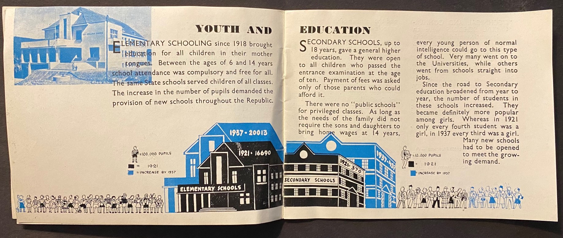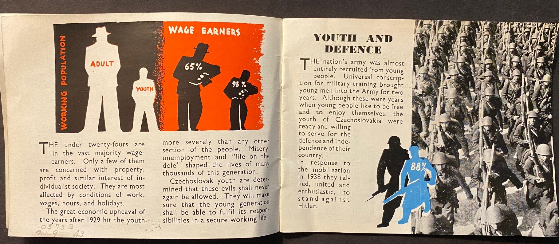 Youth of Czechoslovakia1 was a Czech-in-exile response to the situation in the country as it stood in 1943. The situation of course was critical, and the compiler of the work, F.L. Lowidt, chronicles the state of the affairs from the end of the First World War to the occupation sometime late in 1943. About half of the work concentrates on the war period following "the fatal policy of Munich" and the "sacrifice" of Czechoslovakia to impossibly placate Hitler. It is a very interesting document, and as there are only a half-dozen or so located by WorldCat in libraries worldwide, I'm reproducing it here. Of special note are the four pages or so dealing with children and the youth being used for "forced labor in Hitler's war machine", the "martyrdom of youth", and the resistance movement.