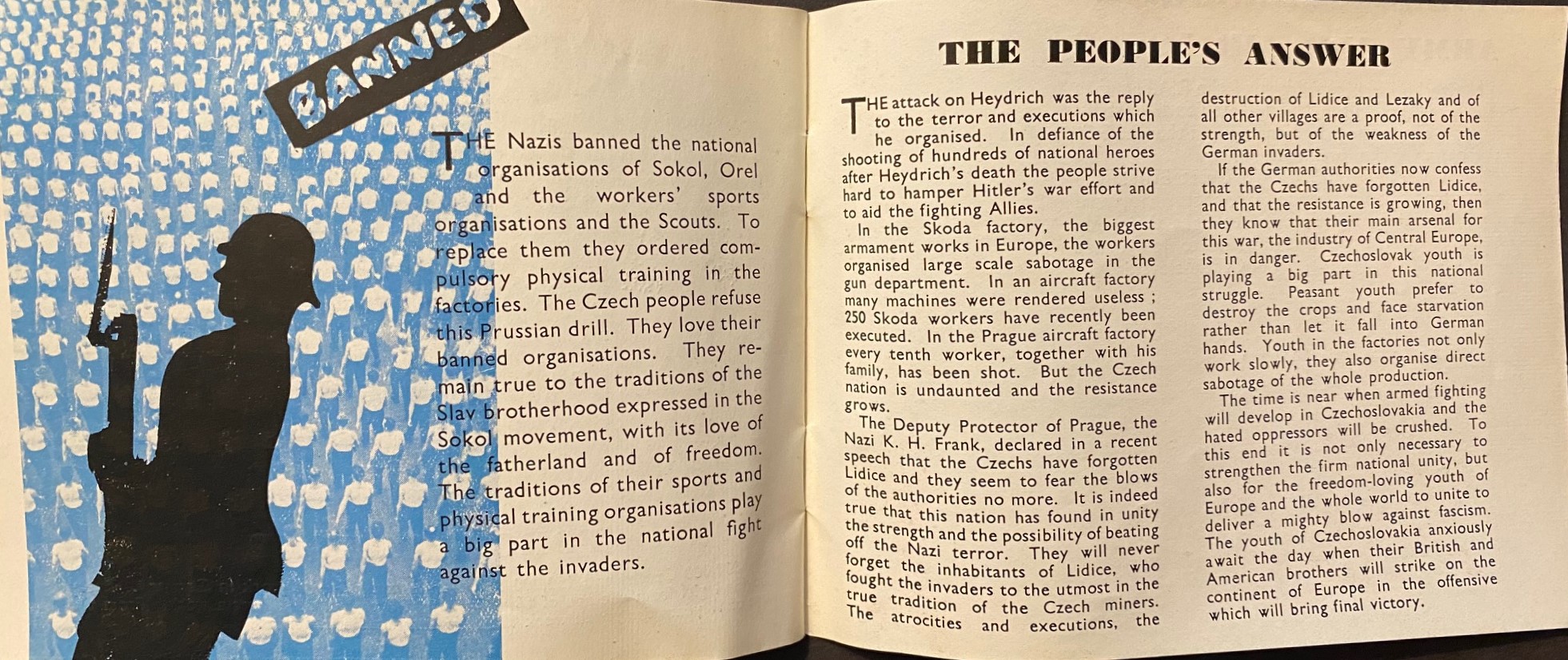 1. LOWIDT, F.J. (compiler); artwork by W. Slosser. Youth of Czechoslovakia. Published by the Czechoslovak Youth Committee, London (and printed by Dugdale Printing, Ltd.).[1943] No date stated but WorldCat (which locates only six copies) believes it to be 1943. My copy--a Library of Congress duplicate--has a cataloguer's pencil notation for being received on 6 March 1943.