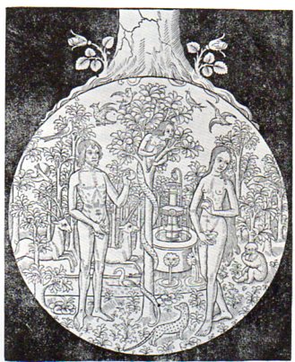 The door/gate doesn't seem to appear very often (to my memory and experience, anyway) but this image--a rather famous one from the great Nuremberg Chronicle (printed in 1493 by Anton Koberger) offers us a little clue, as well as a mystery. We see the temptation of Adam and Eve on the right, and their expulsion because of their inability to reconcile the threat of pleasure on the left.