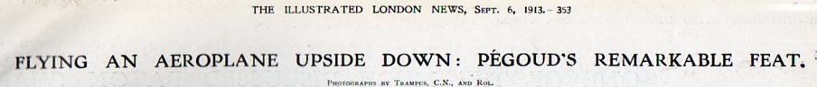 "Pégoud prepared a Blériot monoplane fitted with a Gnome engine and advised half a dozen friends of his plan. They did their utmost to dissuade him, but he invited them to witness the performance, and this morning at the Juvisy aerodrome he climbed into the machine and rose. At the moment of his departure he was by far the calmest person present.