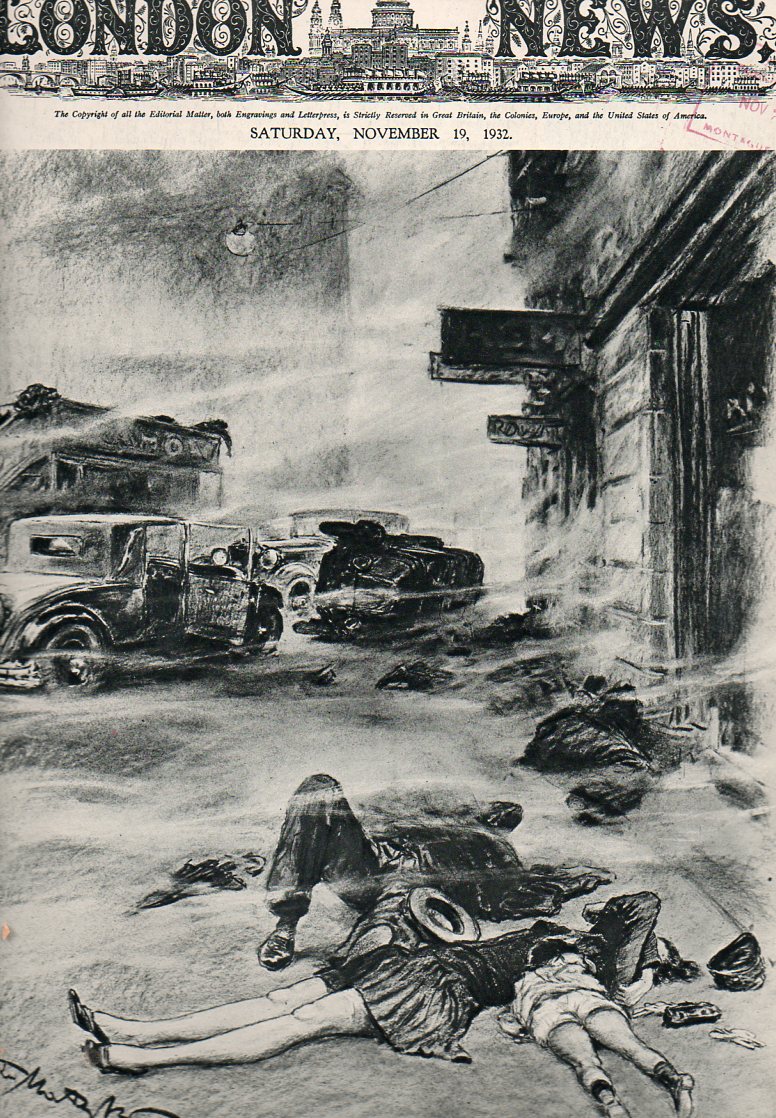 above. 20+ years later, in the early 1930's bombing became more sophisticated, including a new arsenal of poison gas weapons. The threat from this weapon was agonizing and palpable–the results of gas attacks upon armed combatants in WWI and the gassing of civilians in the 1920's and early 1930's made a hard strike into the social fabric, an enormous gapping new hole to be filled in the heart of fear. [And of course this fear was felt everywhere, from London to New York to Leipzig to Moscow to Milan, as we can see in these few examples below. ALSO: these images may be purchased rfom our blog bookstore, here.]
