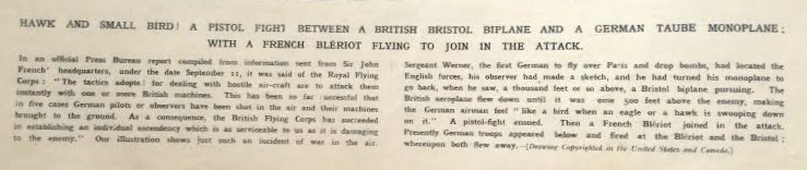 "Public Warning" was a large, billboard-sized poster that appeared throughout England, posted in the first year of the war, appeared in Technical World Magazine in May 1915. Outside of delivering some good, solid information on behavior and bombing it supplied German/British aircraft silhouettes to help people distinguish between friendly/enemy aircraft, meaning that they could take cover and report the actions of enemy aircraft (valuable information in pre-RADAR days) and also not fret with British aircraft sightings.