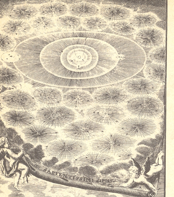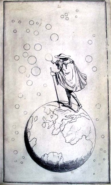 Robert Fludd’s (1574-1637), title page for his Utriusque Cosmi . . . Historia (1617) features this complicated astrological wheel with a Vitruvian-man-like image at the vortex of the imaged pulls and pushes of the cosmos. In addition to everything else, real and imagined, Rosicrucianism and astrology and puffy-birds, Fludd, who was an English physician, delved deeply into the real stuff of the world in this book in addition to all of the other make-believe--optics, the musical intervals, perspective drawing, hydraulic engineering, construction of lifting machines, military engineering and many other interesting, physical science topics. But this drawing, right there on the title page, reveals Fludd’s real interests and shows what governs what he does. Everything else, the math and and the physics, services this need. Of course the image is beautiful, which is why it is here, but it is also a deeply personal, exploitative, cover-all for the things that Fludd *wanted* to find.